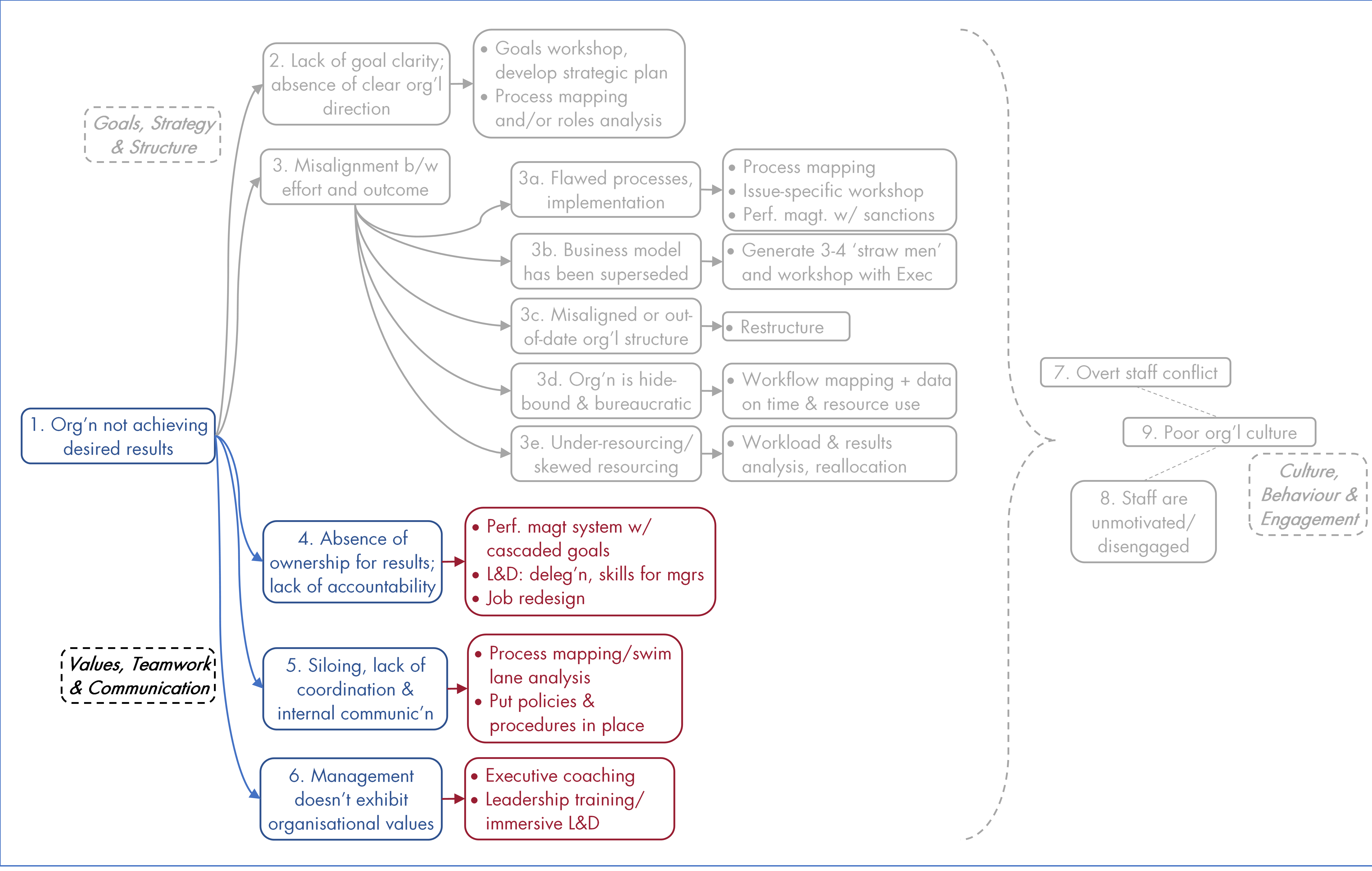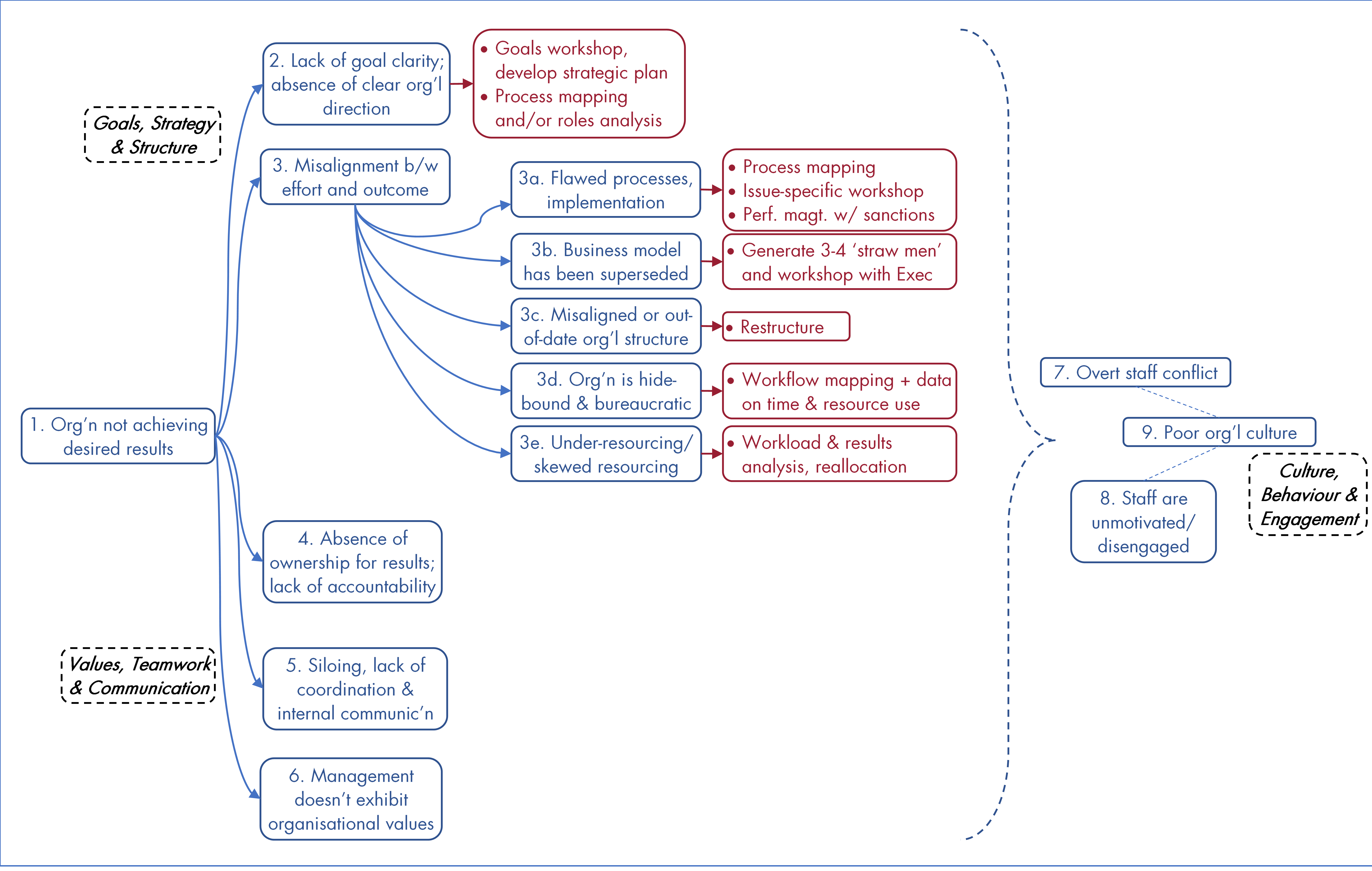 Recall that we considered an organisation not achieving the results it would like to; and this could be due to lack of goal clarity, absence of clear direction, or misalignment between effort and outcome – the problems we dealt with in February: